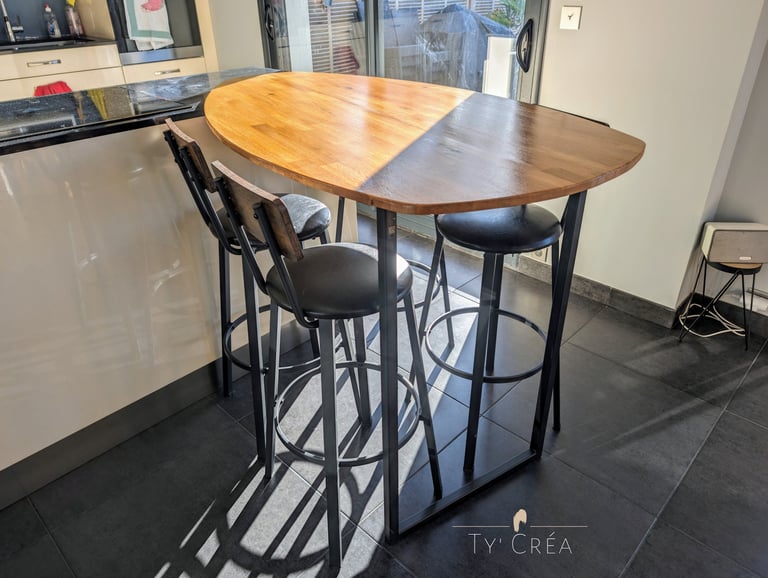 Description : Structure en tube acier 30x30 avec finition noire satinée et chêne lamellé collé vernis transparent mat !